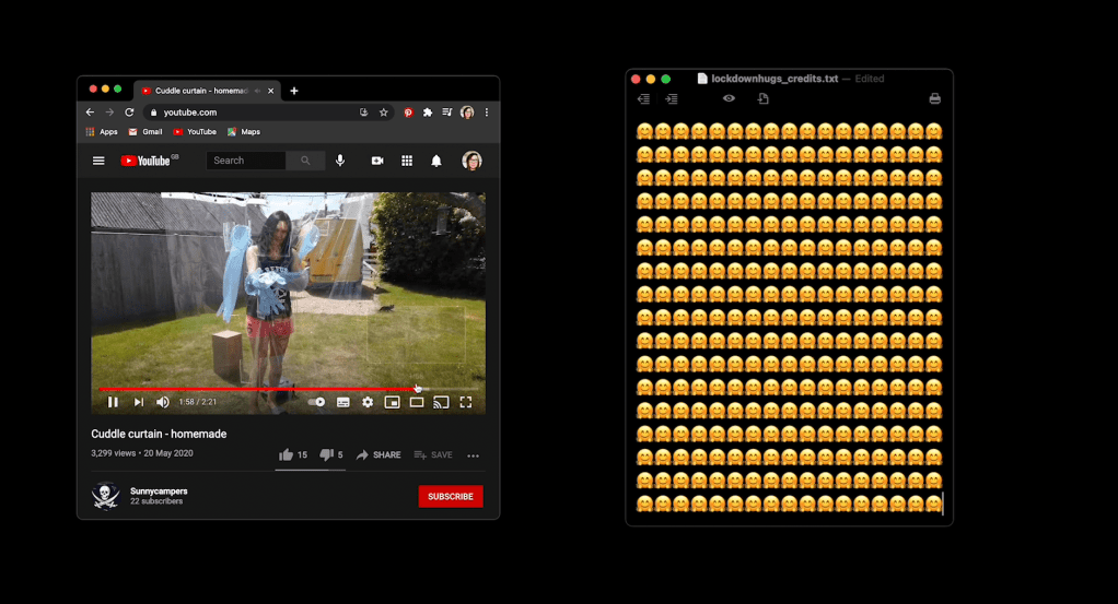 Lockdown Hugs captures the desire for human touch during the global pandemic. This short desktop documentary inspired by Kevin B. Lee uses archive and the computer browser to showcase a window into human desire.